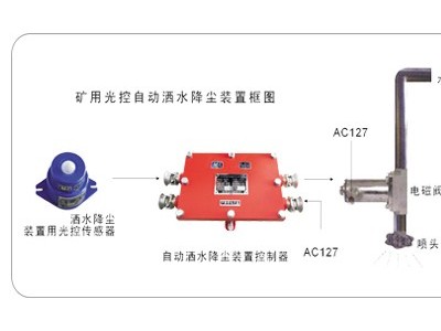 ZPG127矿用光控自动洒水降尘装置(以下简称装置),由ZP-127Z矿用自动洒水降尘装置主控箱(以下简称主控箱),ZP-9G矿用自动洒水降尘装置用光控传感器,以及执行器矿用防爆电磁阀等组成。主要用于储煤仓粉尘作业场所。通过自动喷雾或洒水,不仅降尘除尘、净化空气,同时能吸收一定的有害气体,降低甲烷浓度和环境温度。它是改善和治理粉尘作业环境,防治粉尘危害的安全管理设备。